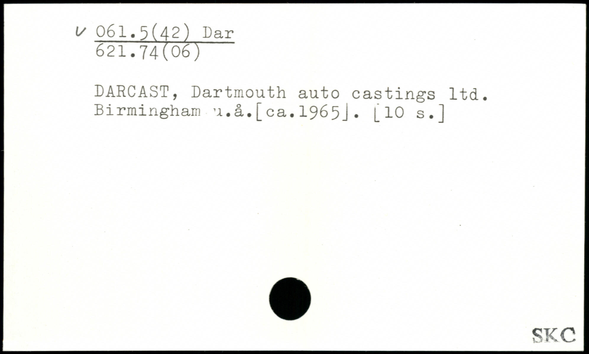 DARCAST, Dartmouth auto castings ltd. Birmingham u.a.[ca.1965J. [