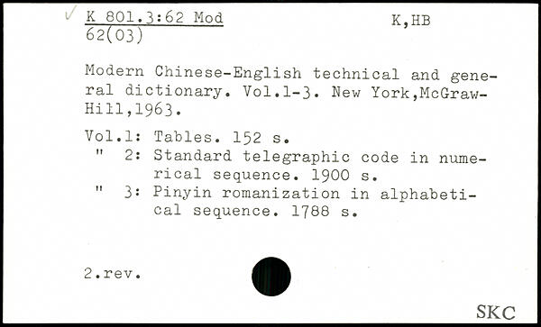 Modem Chinese-English technical and general dictionary.