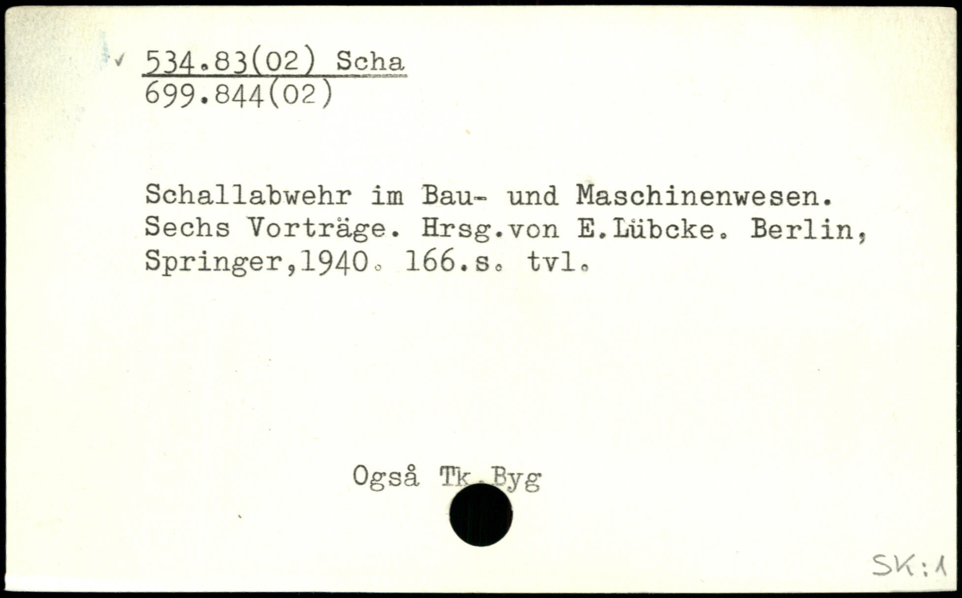 Schallabwehr im Bau- und Maschinenwesen. Sechs Vorträge. Hrsg.von E.Lübcke.
