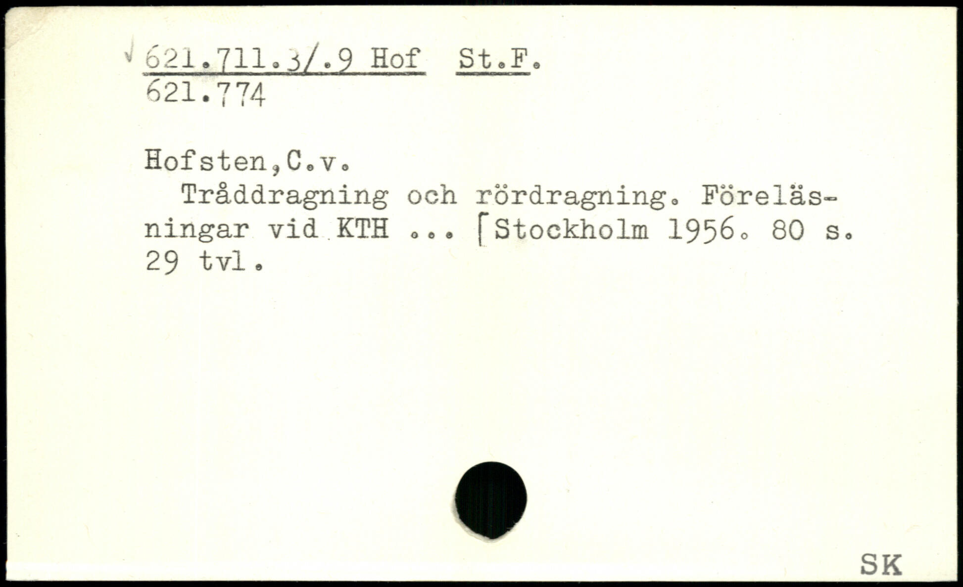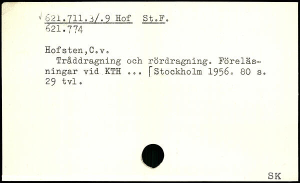 Tråddragning och rördragning. Föreläsningar vid KTH ... f