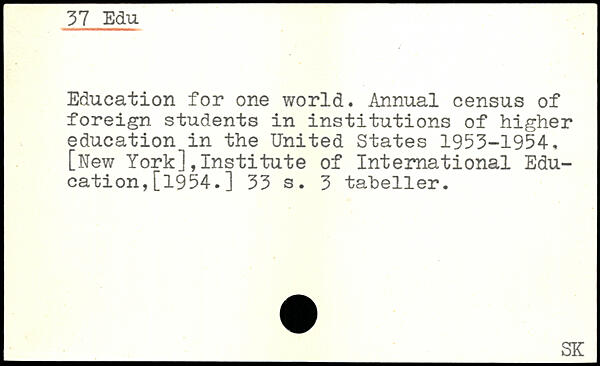 Education for one world. Annual census of foreign students in institutions of higher education in the United States 1953-1954. [New York],Institute of International Education, [1954.]