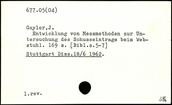 Entwicklung von Messmethoden zur Untersuchung des Schusseintrags heim Wehstuhl.