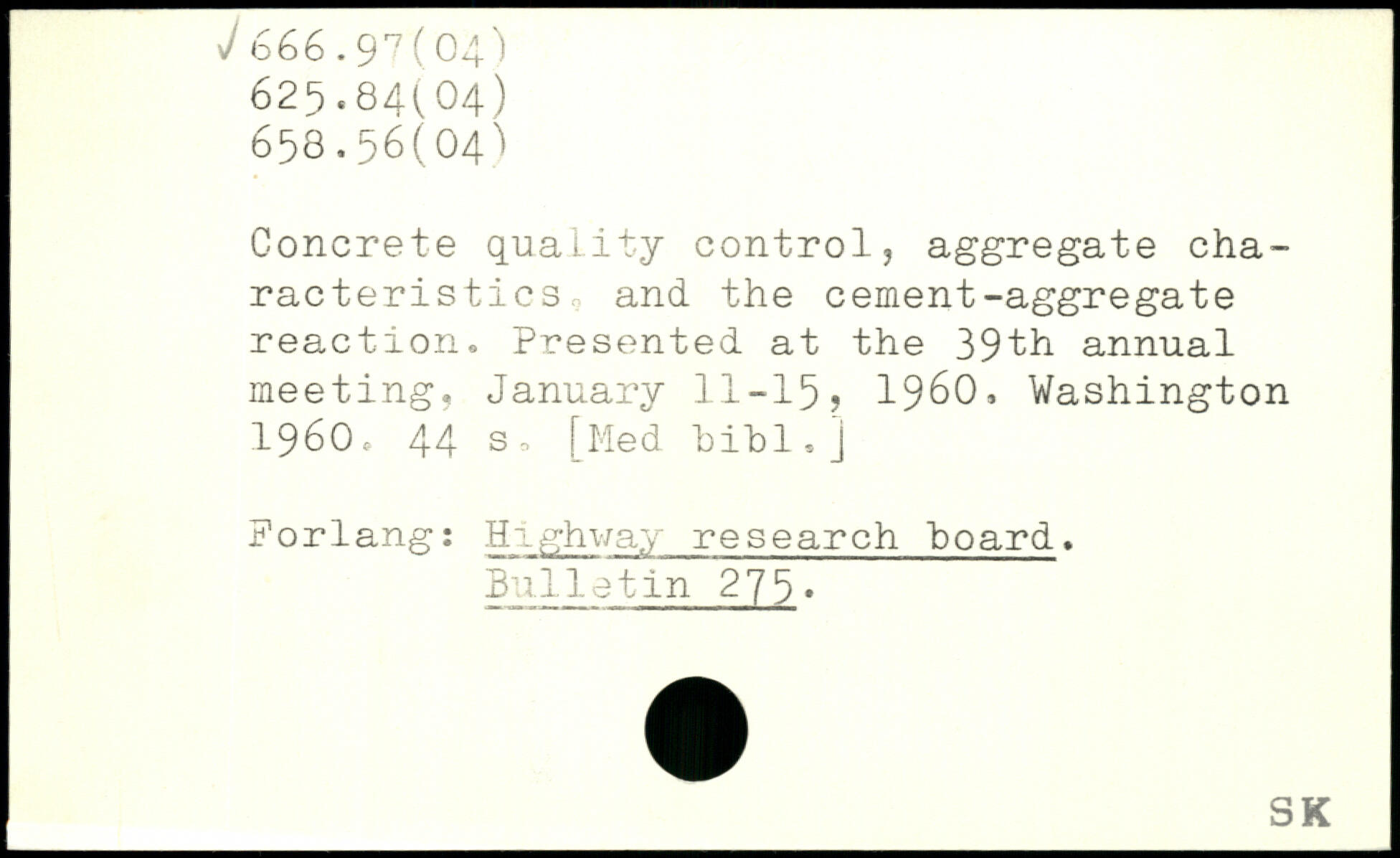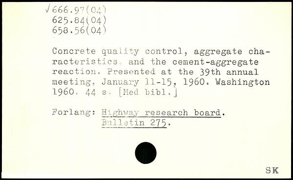 Concrete quality control, aggregate characteristics and the cement-aggregate reaction. Presented at the 39th annual meeting, January 11-15? 1960.