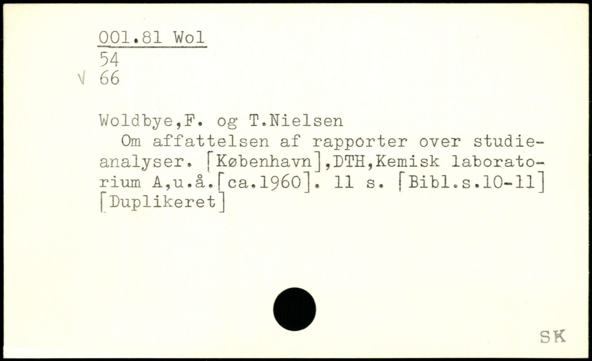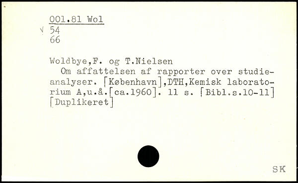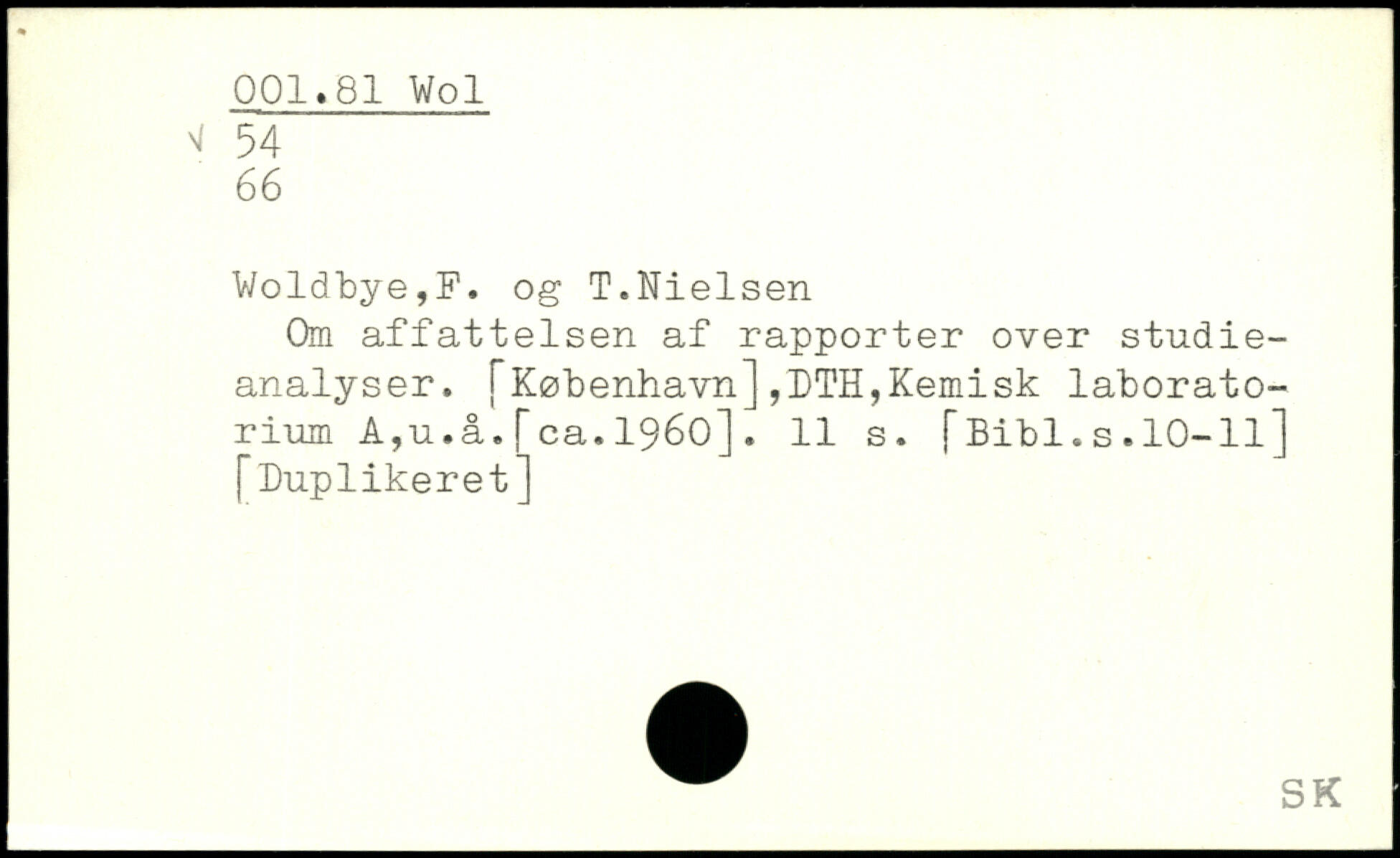 Om affattelsen af rapporter over studieanalyser. jKøbenhavn],DTH,Kemisk laboratorium A,u.å.[ca.1960].