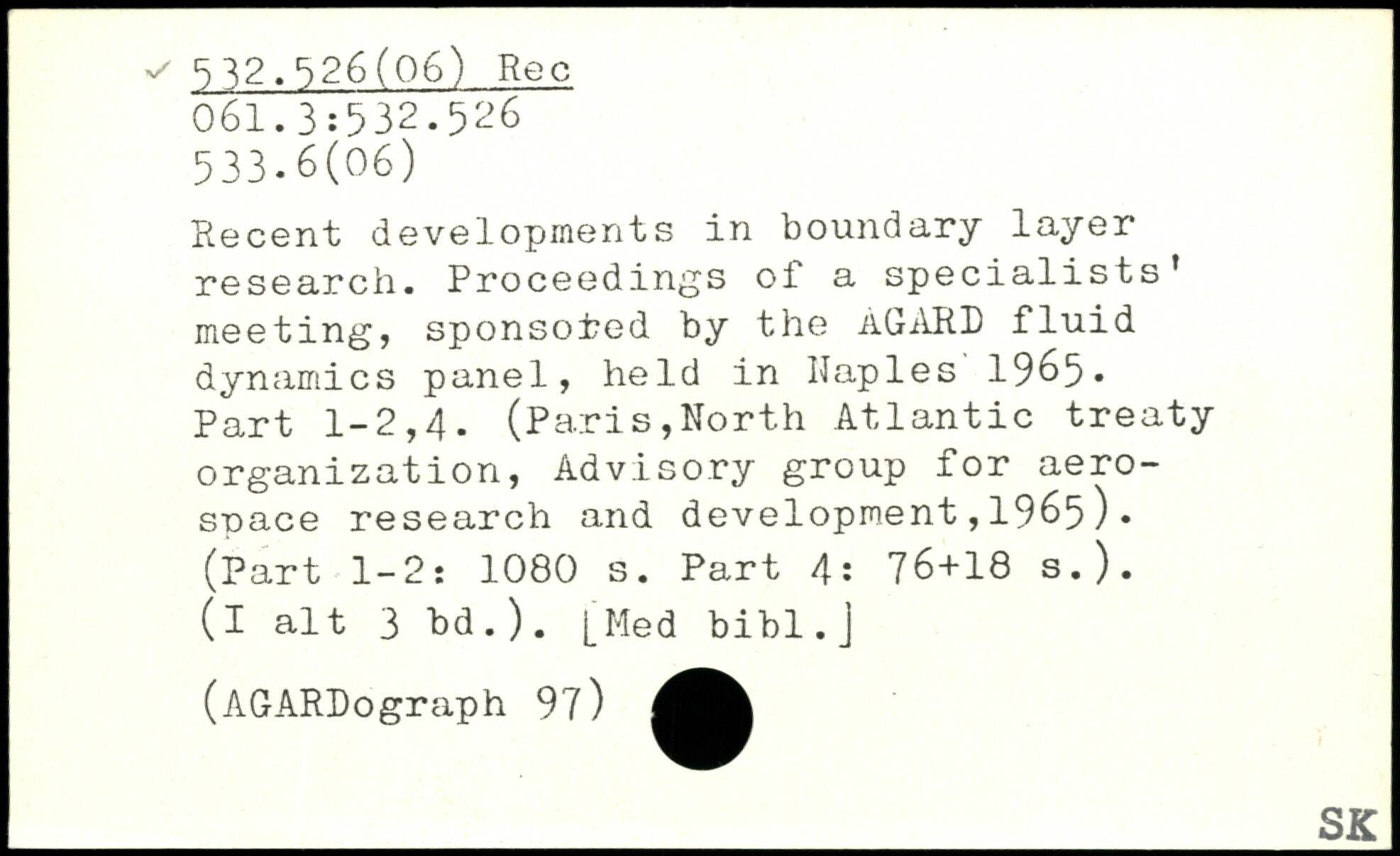 Recent developments in boundary layer research. Proceedings of a specialists’ meeting, sponsored by the aGARD fluid dynamics panel, held in Naples 1965. Part 1-2,4. (Paris,North Atlantic treaty organization, Advisory group for aerospace research and development,1965). (Part 1-2: