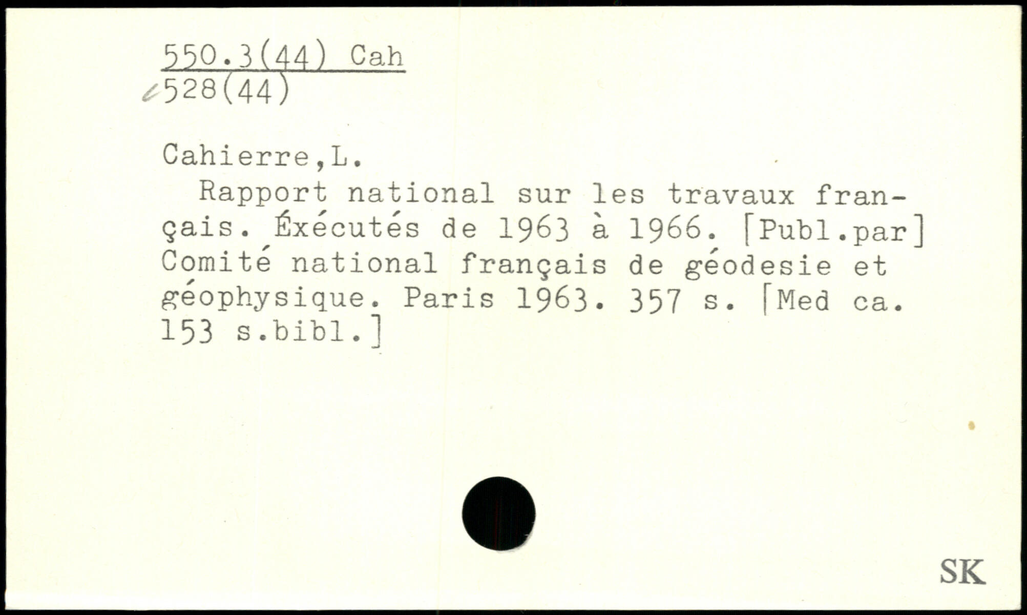 Rapport national sur les travaux français. Éxécutés de 1963 à 1966.