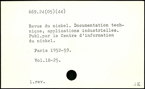 Revue du nickel. Documentation technique, applications industrielles. Publ.par le Centre d’information du nickel.