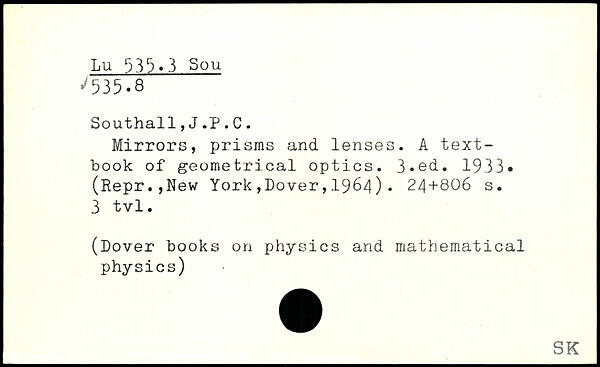 Mirrors, prisms and lenses. A textbook of geometrical optics.
