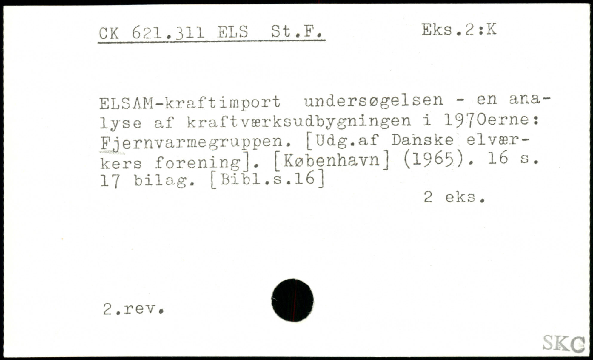 ELSAM-kraftimport undersøgelsen - en analyse af kraftværksudbygningen i 1970erne: Pjernvarmegruppen. [Udg.af Danske elværkers forening]. [København] (1965).