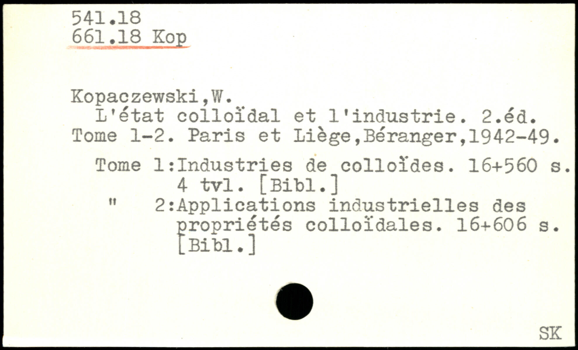 L’état colloïdal et l’industrie. 2.éd. Tome 1-2. Paris et Liège,Béranger,1942-49. Tome 1:Industries de colloïdes.
