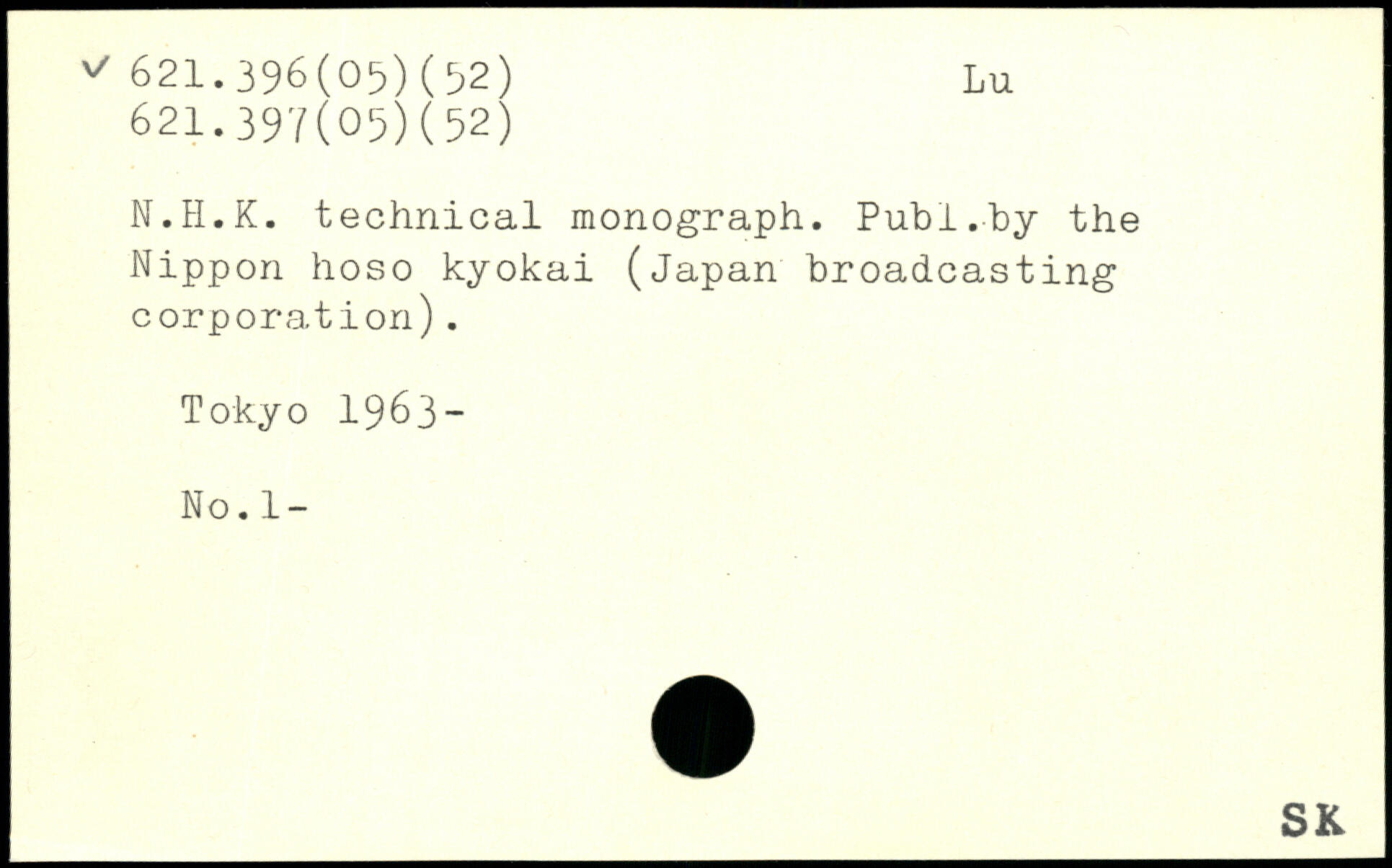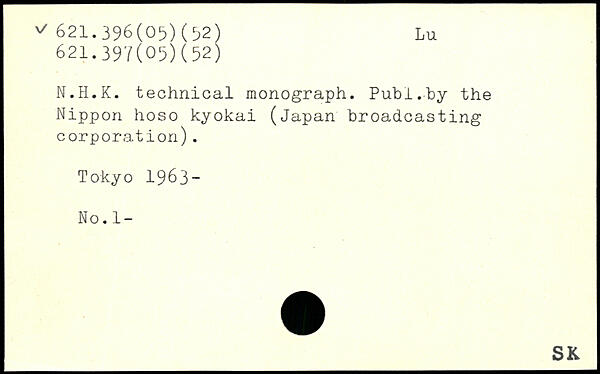 N.H.K. technical monograph. PubI.-by the Nippon hoso kyokai (Japan broadcasting corporation).