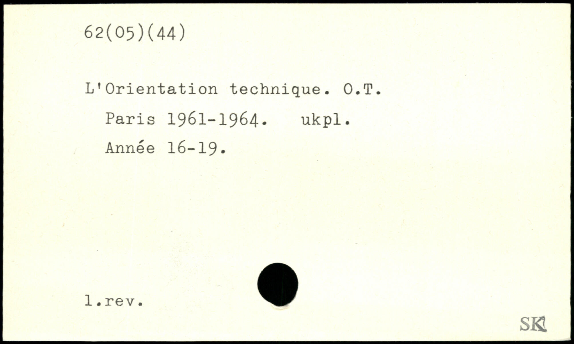L’Orientation technique. O.T.