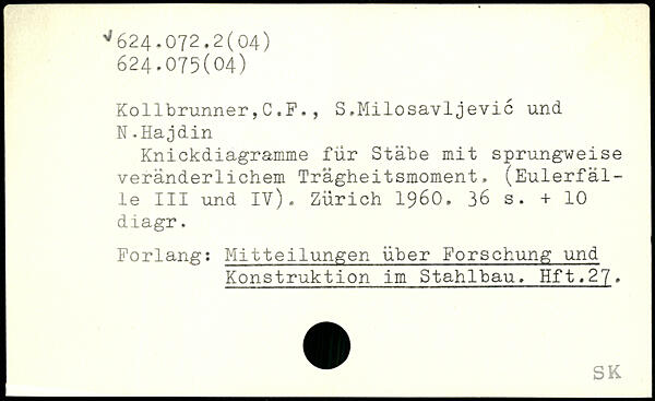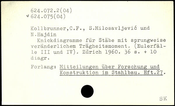 Kollbrunner,C.F., S,Milosavljevic und N-Hajdin Knickdiagramme für Stäbe mit sprungweise veränderlichem Trägheitsmoment, (Eulerfälle III und IV). Zürich 1960
