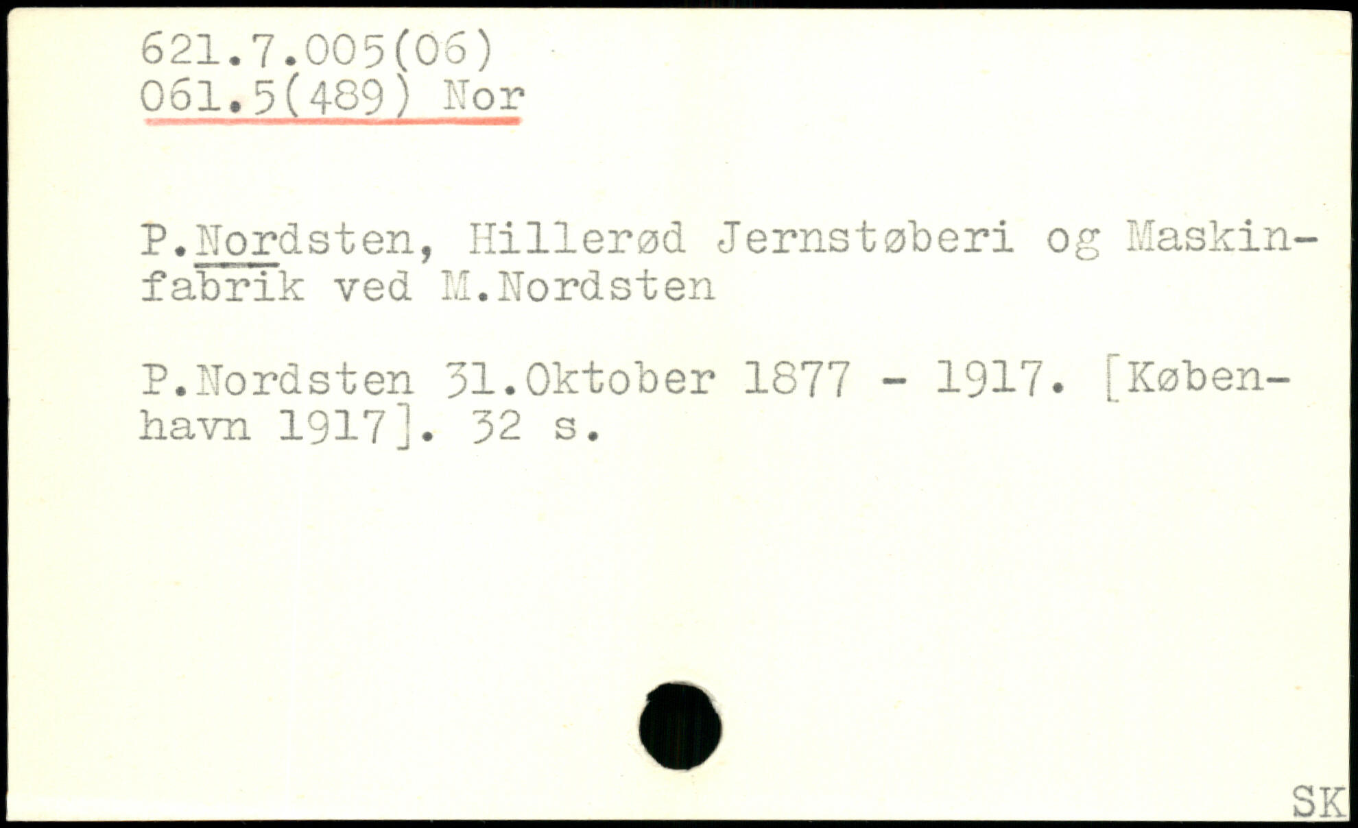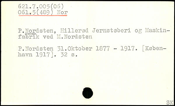 P.Hordsten, Hillerød Jernstøberi og Maskin-fabrik ved M.Nordsten P.Nordsten 31.Oktober 1877 - 1917.