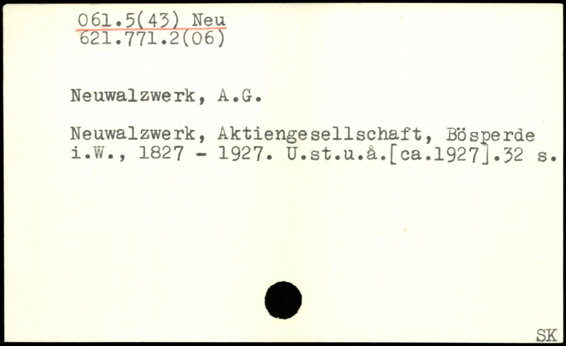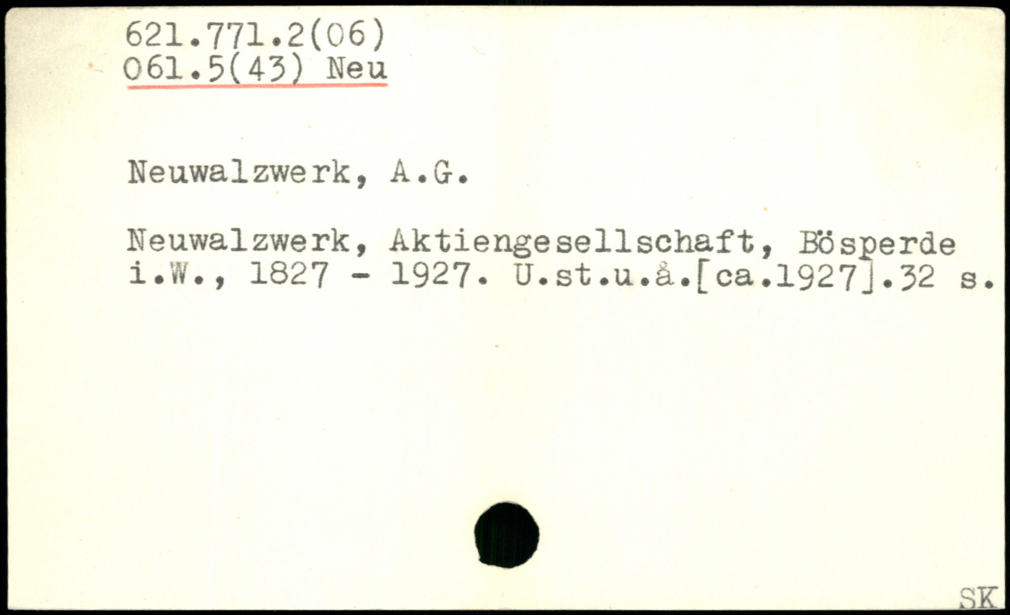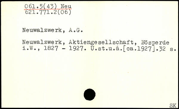 Neuwalzwerk, Aktiengesellschaft, Bösperde i.W., 1827 - 1927. Ü.st.u.ä.[ca.1927j.