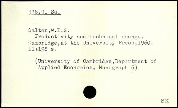 Productivity and technical change. Cambridge,at the University Press,1960.