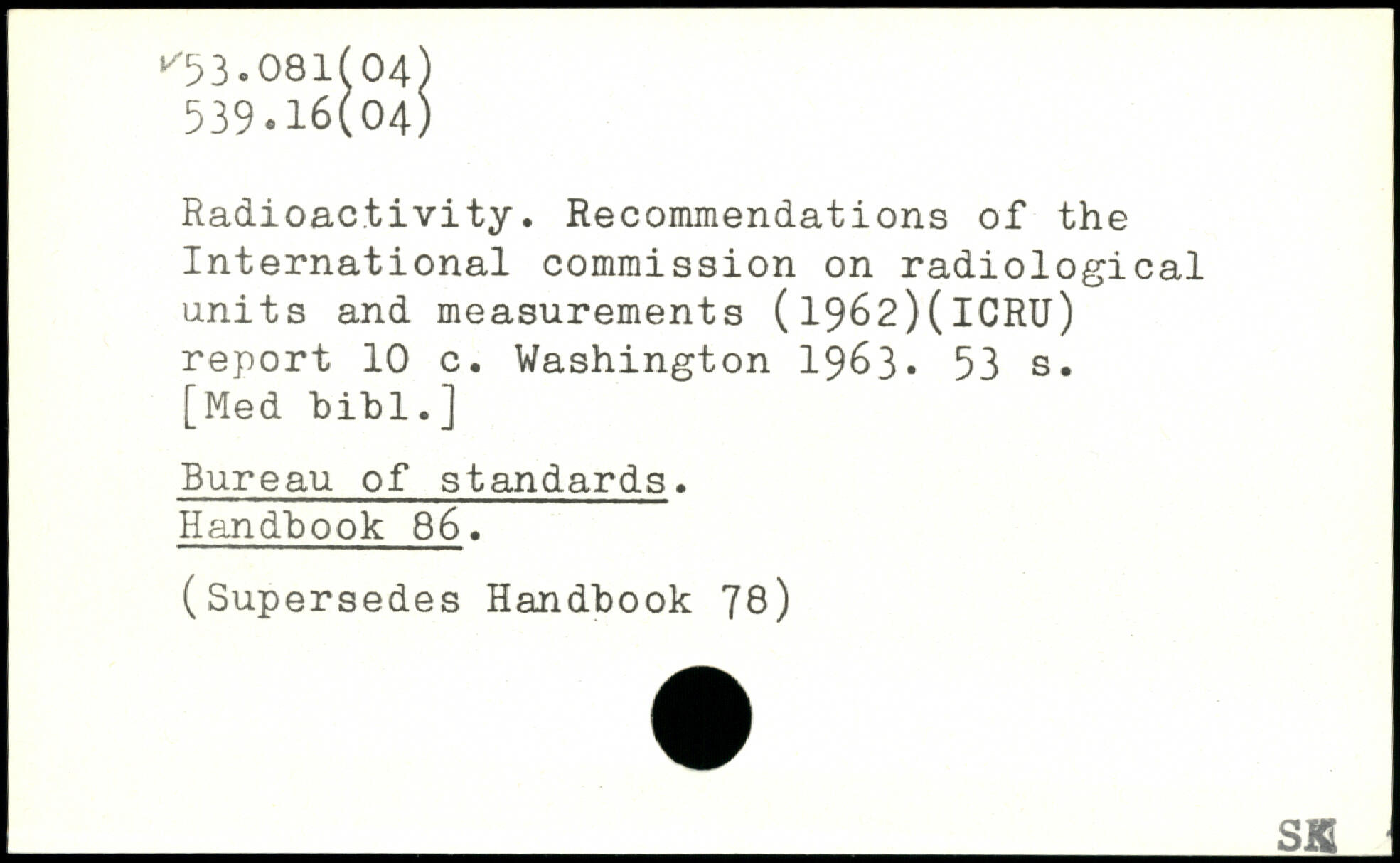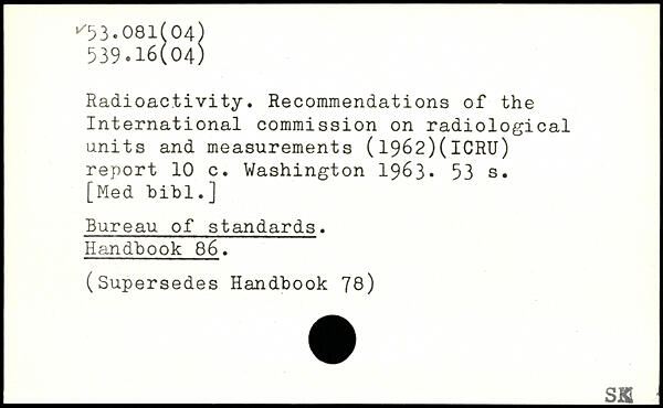 Radioactivity. Recommendations of the International commission on radiological units and measurements (1962)(lCRU) report 10 c.