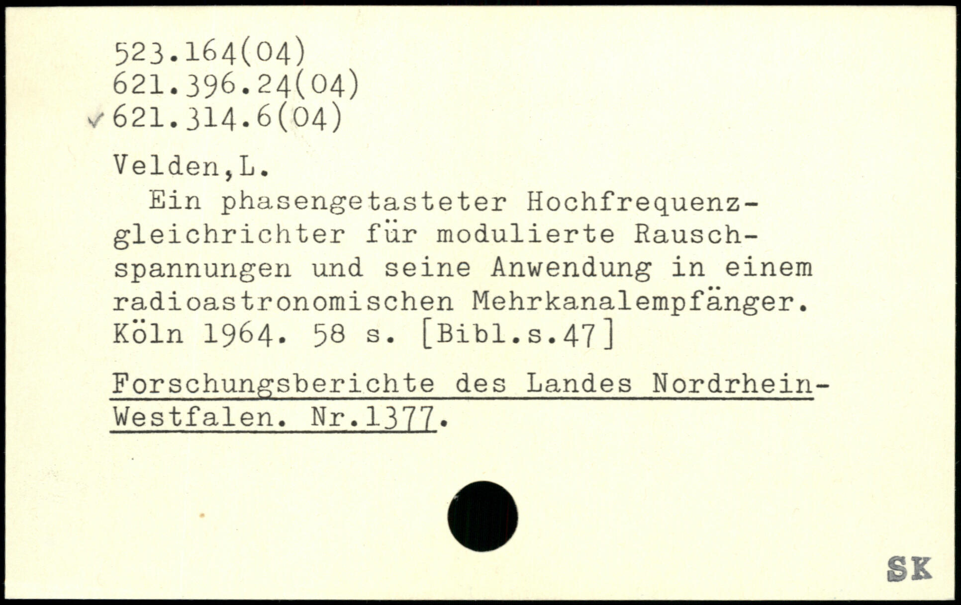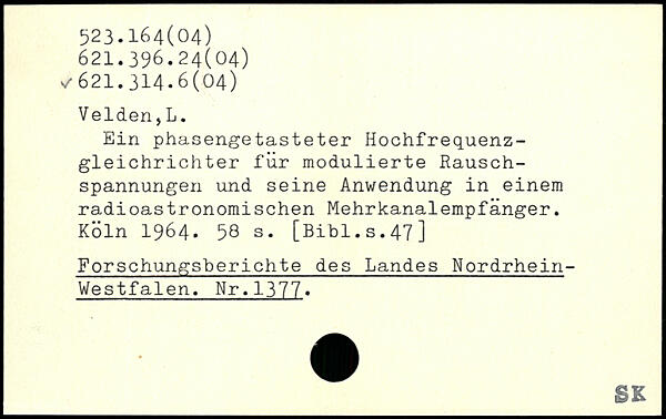 Ein phasengetasteter Hochfrequenzgleichrichter für modulierte Rauschspannungen und seine Anwendung in einem radioastronomischen Mehrkanalempfänger.