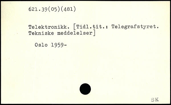 Telektronikk. [Tidl.tit.s Telegrafstyret. Tekniske meddelelser] Oslo 1959-