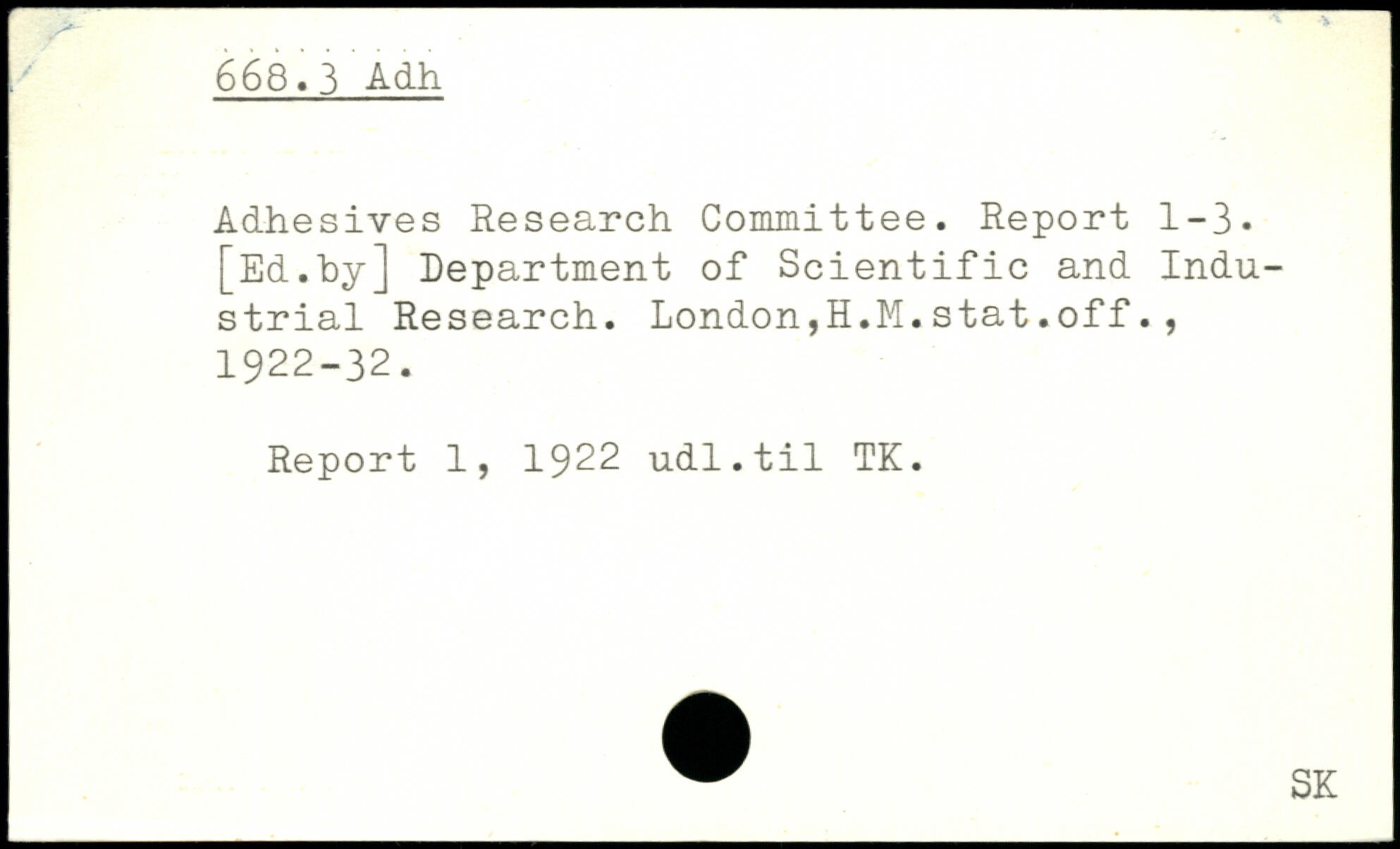 Adhesives Research Committee. Report 1-3. [Ed.by] Department of Scientific and Industrial Research. London,H.M.stat.off., 1922-32. Report 1, 1922 udl.til TK.