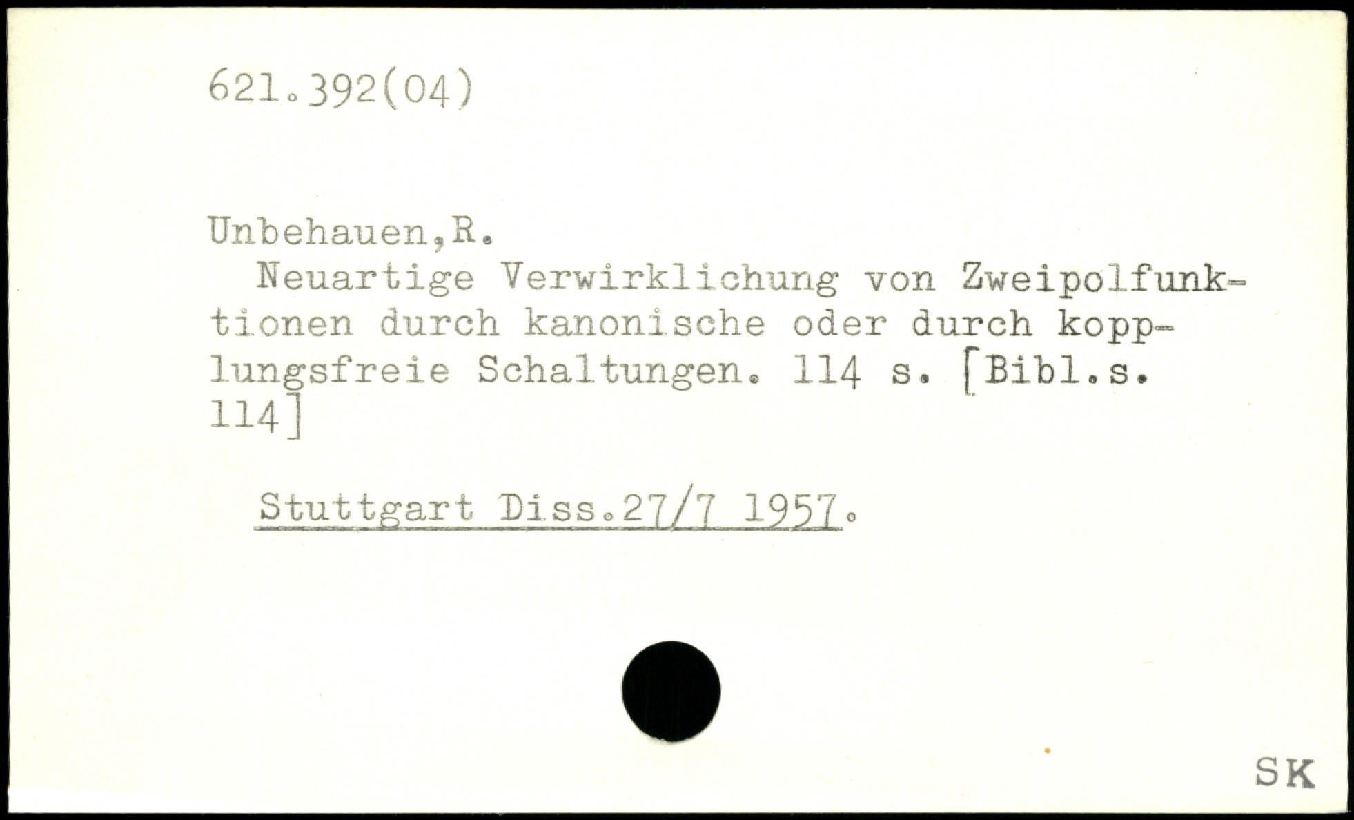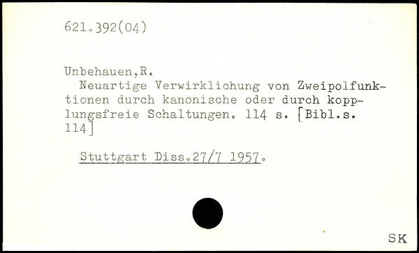 Unbehauen,Re Neuartige Verwirklichung von Zweipolfunk-tionen durch kanonische oder durch kopplungsfreie Schaltungen