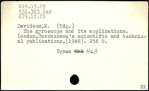 Davidson,!. (Udg.) The gyroscope and its applications. London,Hutchinson's scientific and technical publications,[1946].