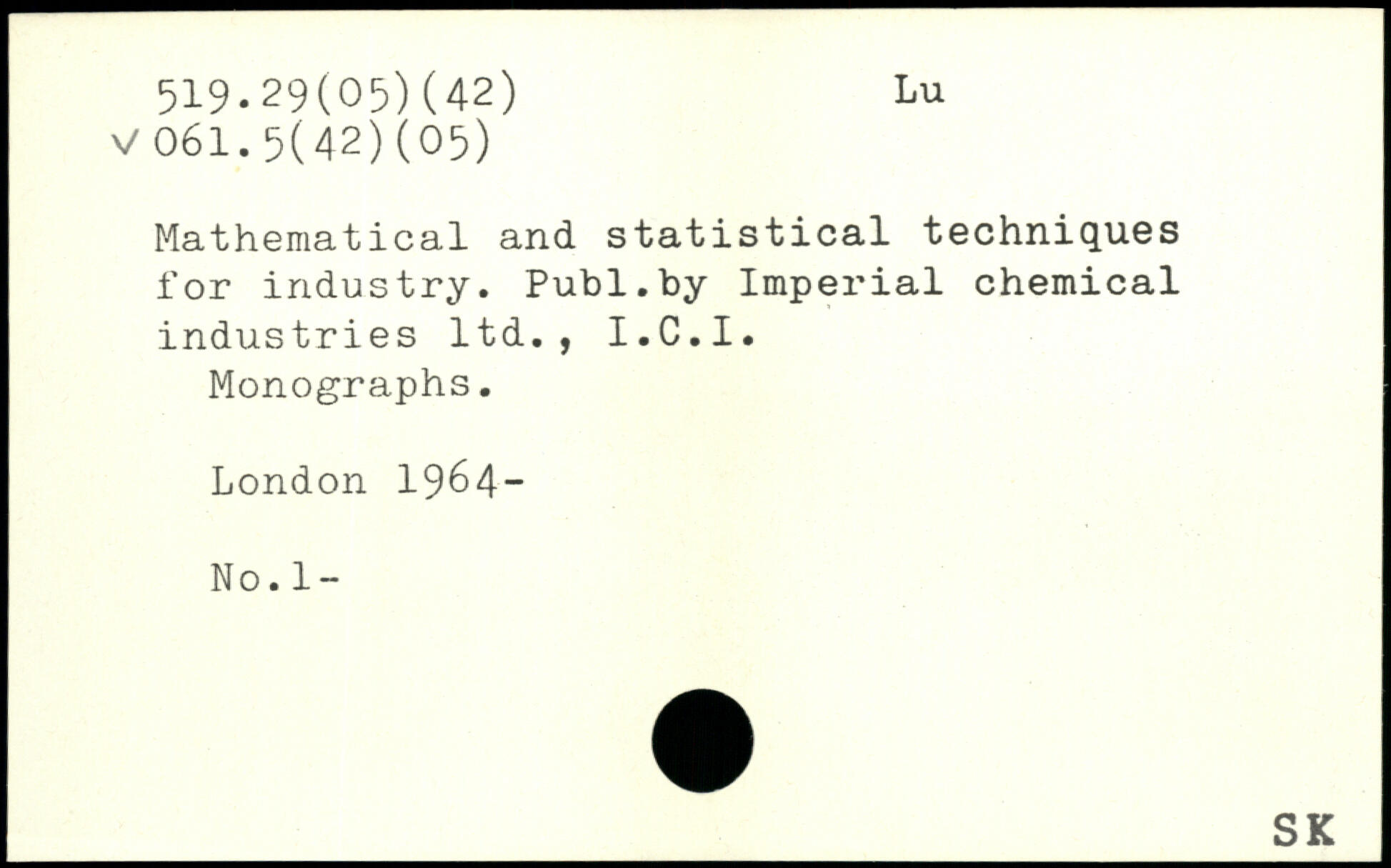 Mathematical and statistical techniques for industry.