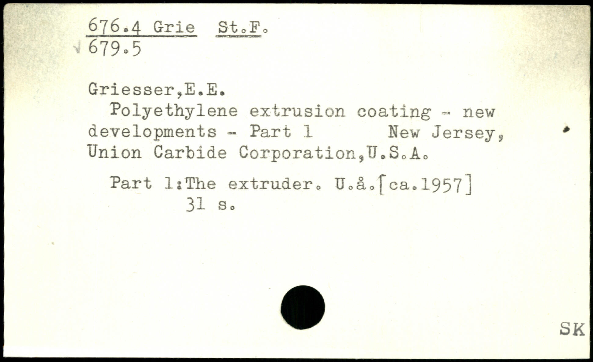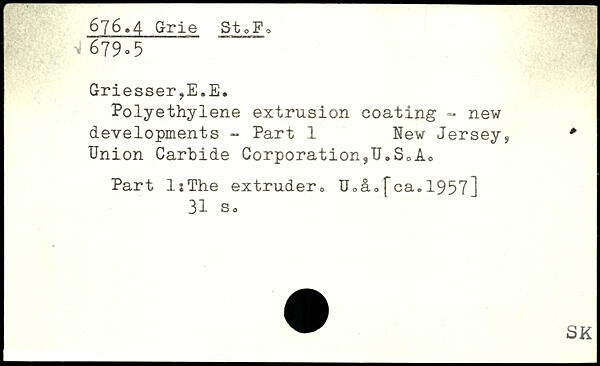 Polyethylene extrusion coating - new developments - Part 1 New Jersey, Union Carbide Corporation,U.S.A. Part l:The extruder. U.a.[ca.1957]