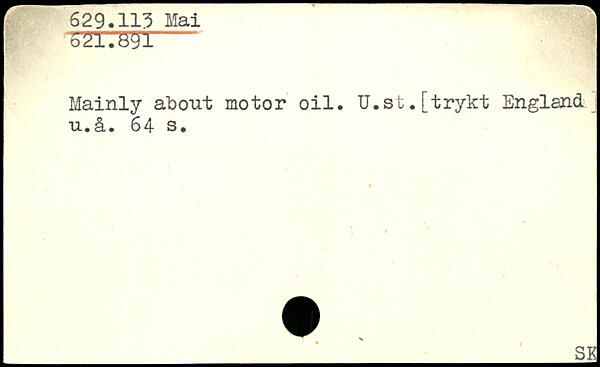 Mainly atout motor oil. U.st.[trykt England u.å.