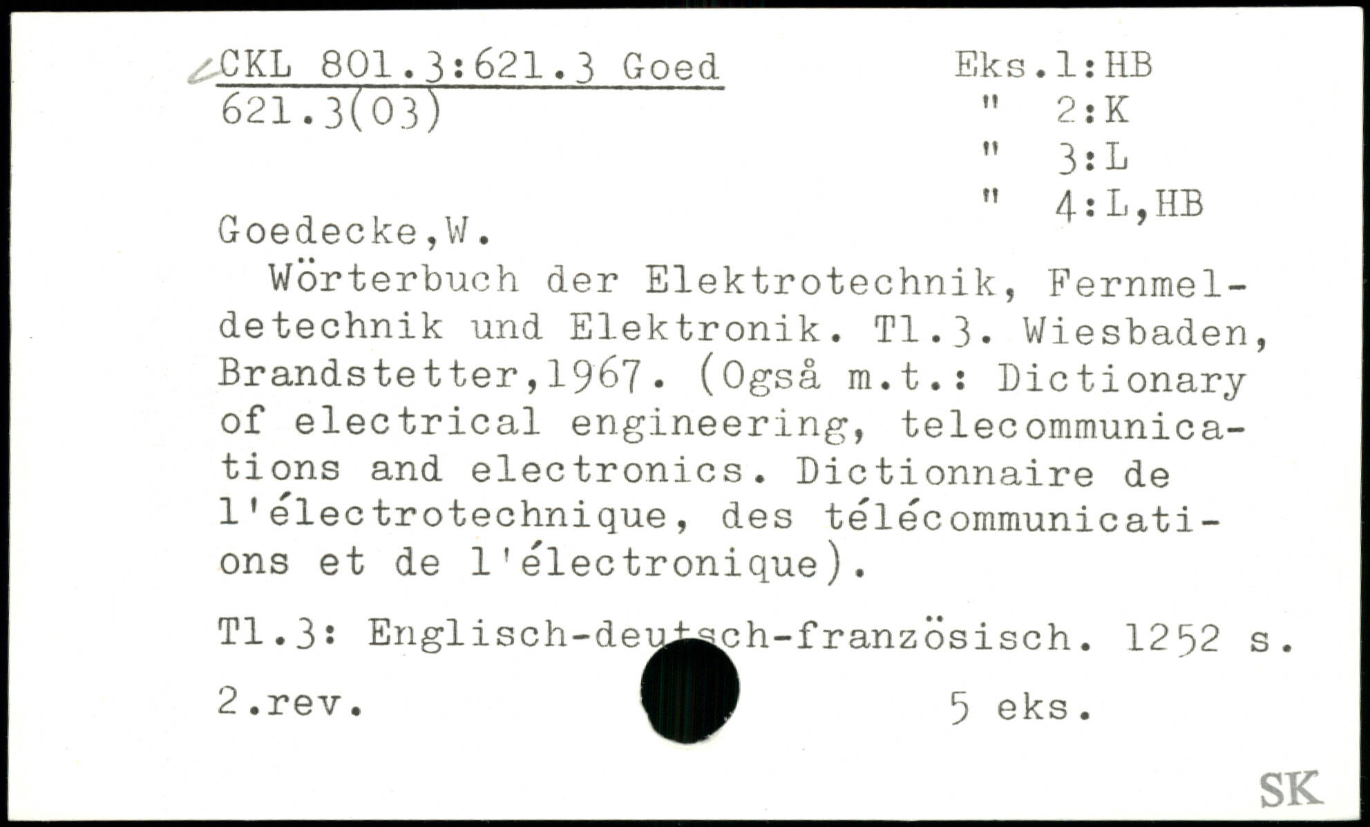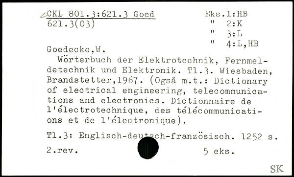 Wörterbuch der Elektrotechnik, Fernmeldetechnik und Elektronik. Tl.3.