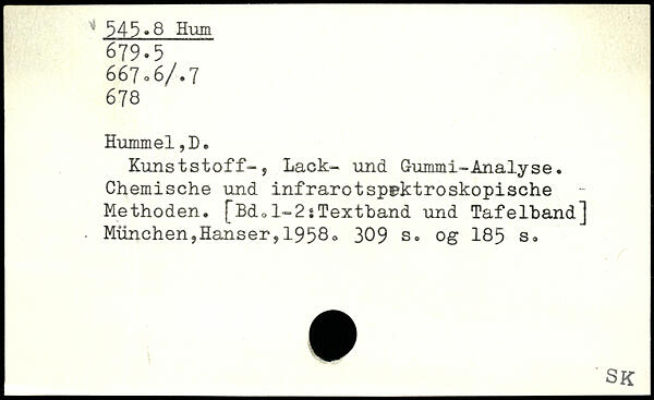 Kunststoff-, Lack- und Gummi-Analyse. Chemische und infrarotsppktroskopische Methoden. [Bd,1-21 Texthand und Tafelband]