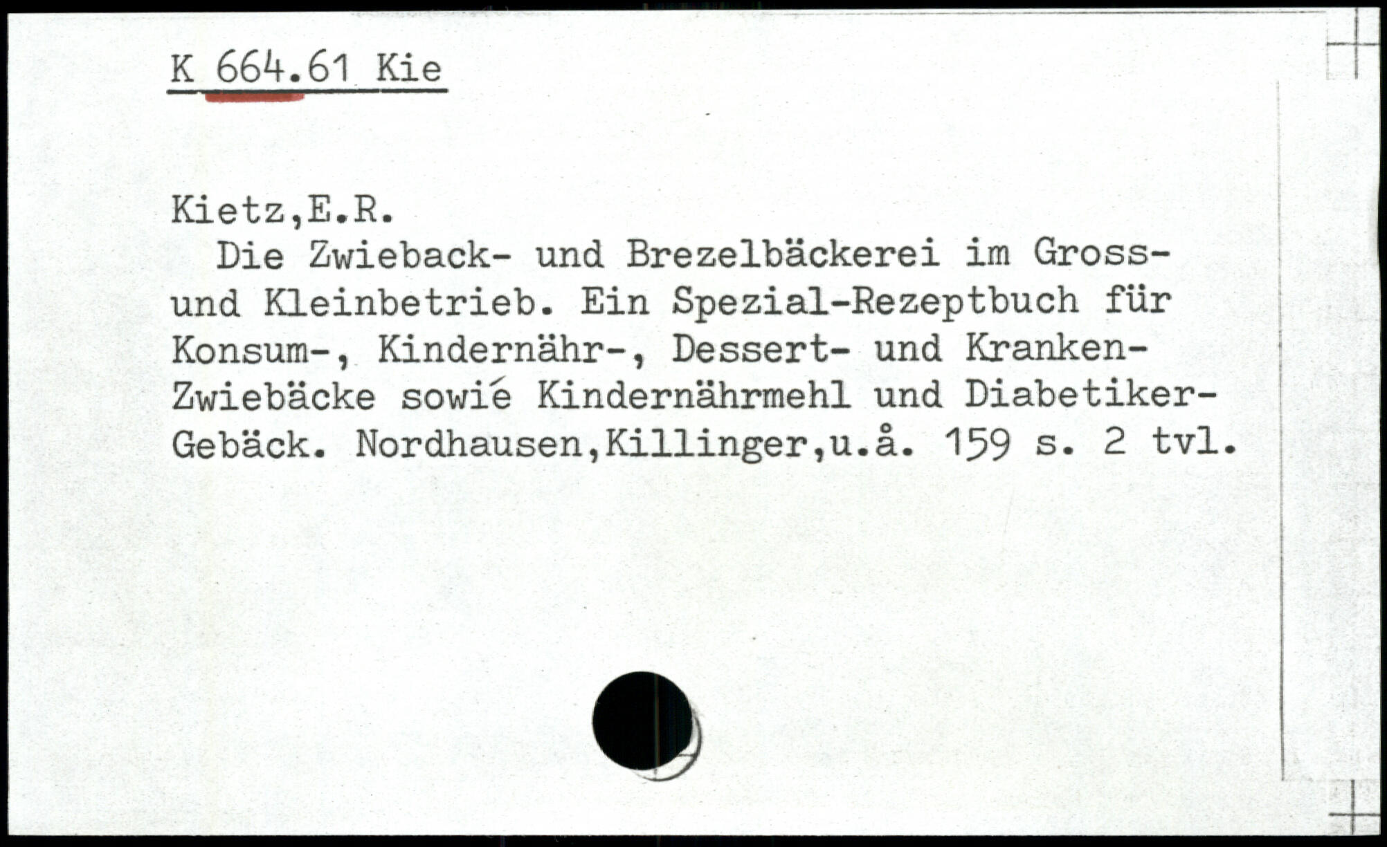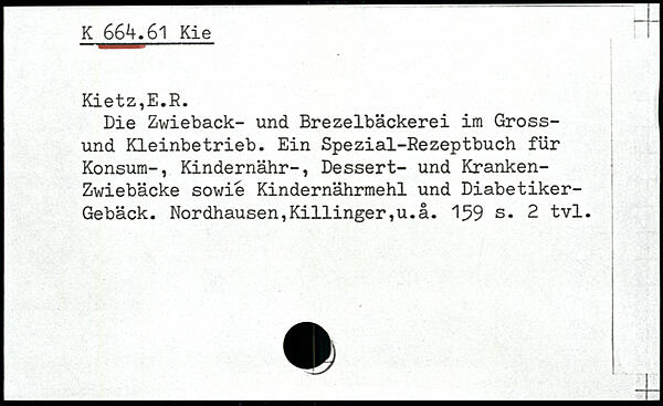 Die Zwieback- und Brezelbäckerei im Gross- i und Kleinbetrieb. Ein Spezial-Rezeptbuch für Konsum-, Kindernähr-, Dessert- und Kranken-Zwiebäcke sowie Kindernährmehl und Diabetiker-Gebäck. Nordhausen,K1111nger,u.å.