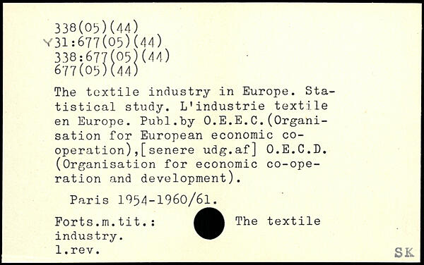 The textile industry in Europe. Statistical study. L’industrie textile en Europe.