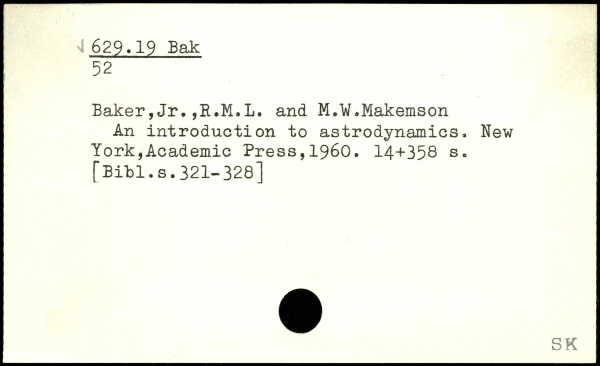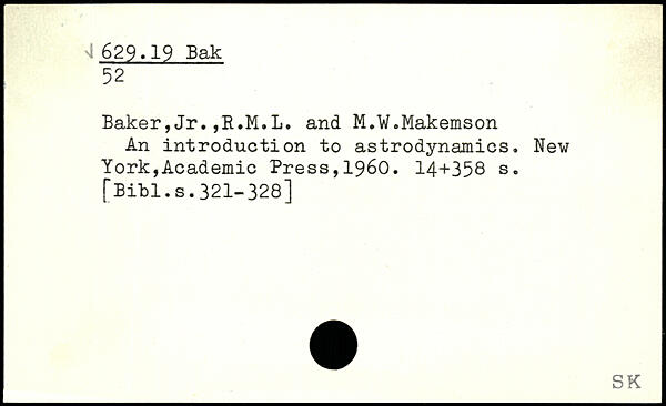 Baker,Jr.,R.M.L. and M.W.Makemson An introduction to astrodynamics.