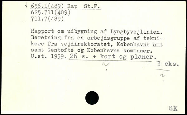 Rapport om udbygning af Lyngbyvejlinien. Beretning fra en arbejdsgruppe af teknikere fra vejdirektoratet, Københavns amt samt Gentofte og Københavns kommuner. U.st. 1959.