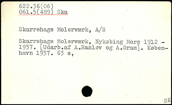Skarrehage Molerværk, A/S Skarrehage Molerværk, Nykøbing Mors 1912 -1937. [Udarb.af A.Ranløv og A.G-ram].