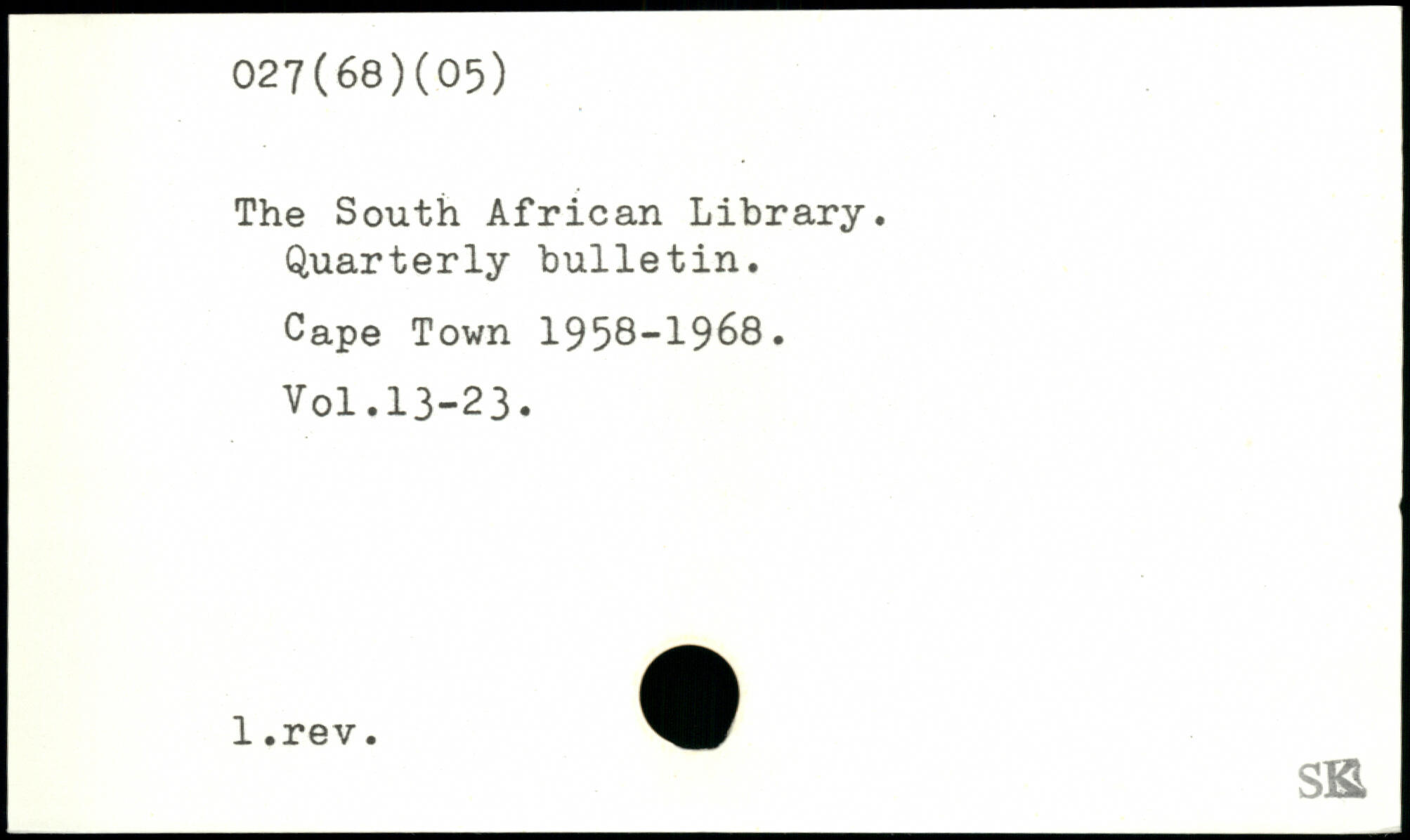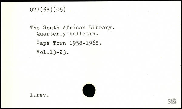 The South African Library. Quarterly bulletin. Cape Town 1958-1968.