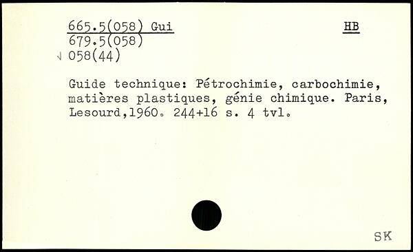 Guide technique: Pétrochimie, carbochimie, matières plastiques, génie chimique.