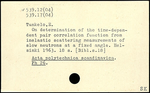 On determination of the tine-dependent pair correlation function from inelastic scattering measurements of slow neutrons at a fixed angle.