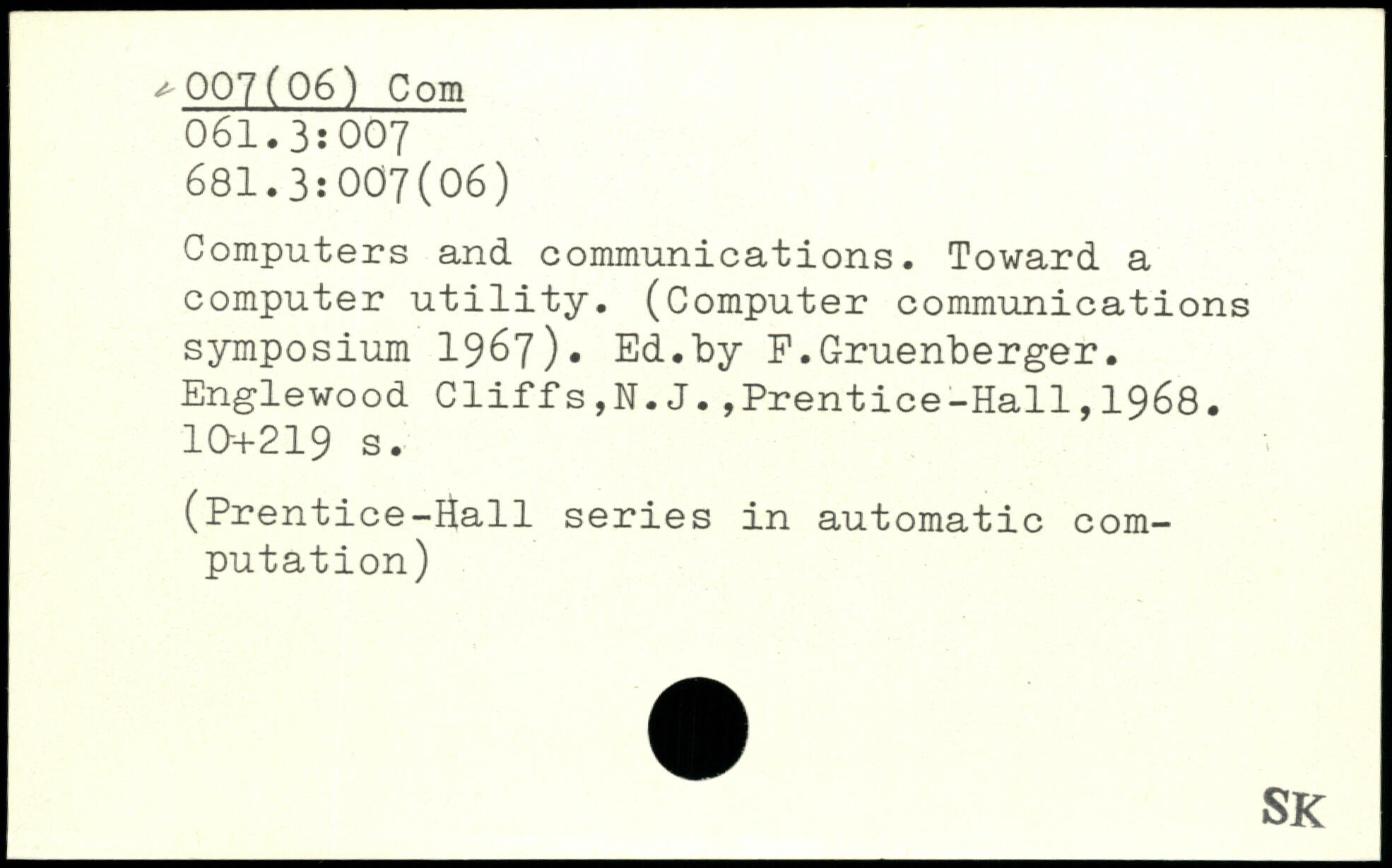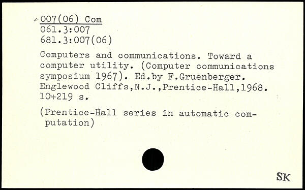 Computers and communications. Toward a computer utility. (Computer communications symposium 1967). Ed.by E.Gruenberger.