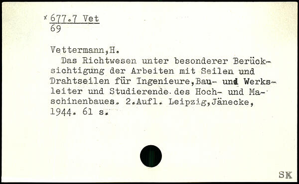 Das Richtwesen unter besonderer Berücksichtigung der Arbeiten mit Seilen und Drahtseilen für Ingenieure,Bau- unt Werksleiter und Studierende, des Hoch- und Ma~' schinenbaues, 2,Aufl.