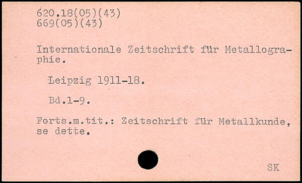 Internationale Zeitschrift für Metallographie. ■