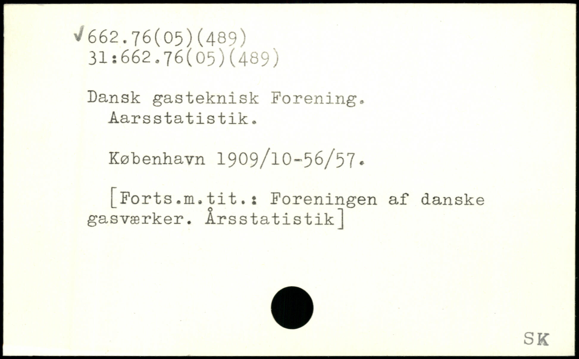 Dansk gasteknisk Forening, Aarsstatistik.