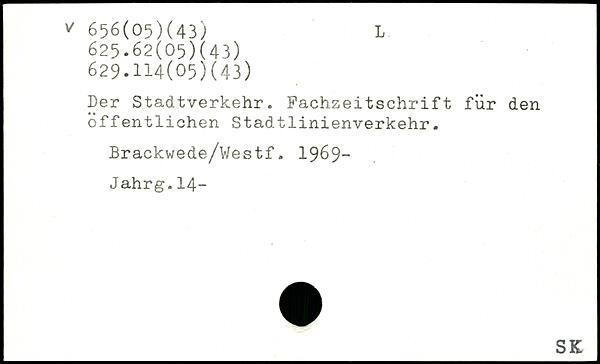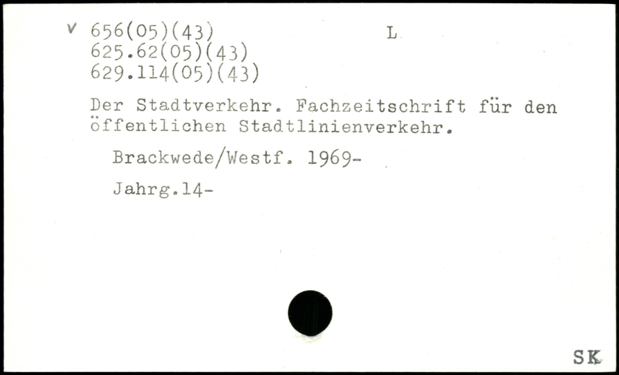 Der Stadtverkehr. Fachzeitschrift für den Öffentlichen Stadtlinienverkehr. Brackwede/Westf. 1969- J ahrg.14-