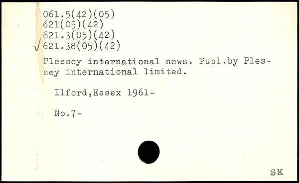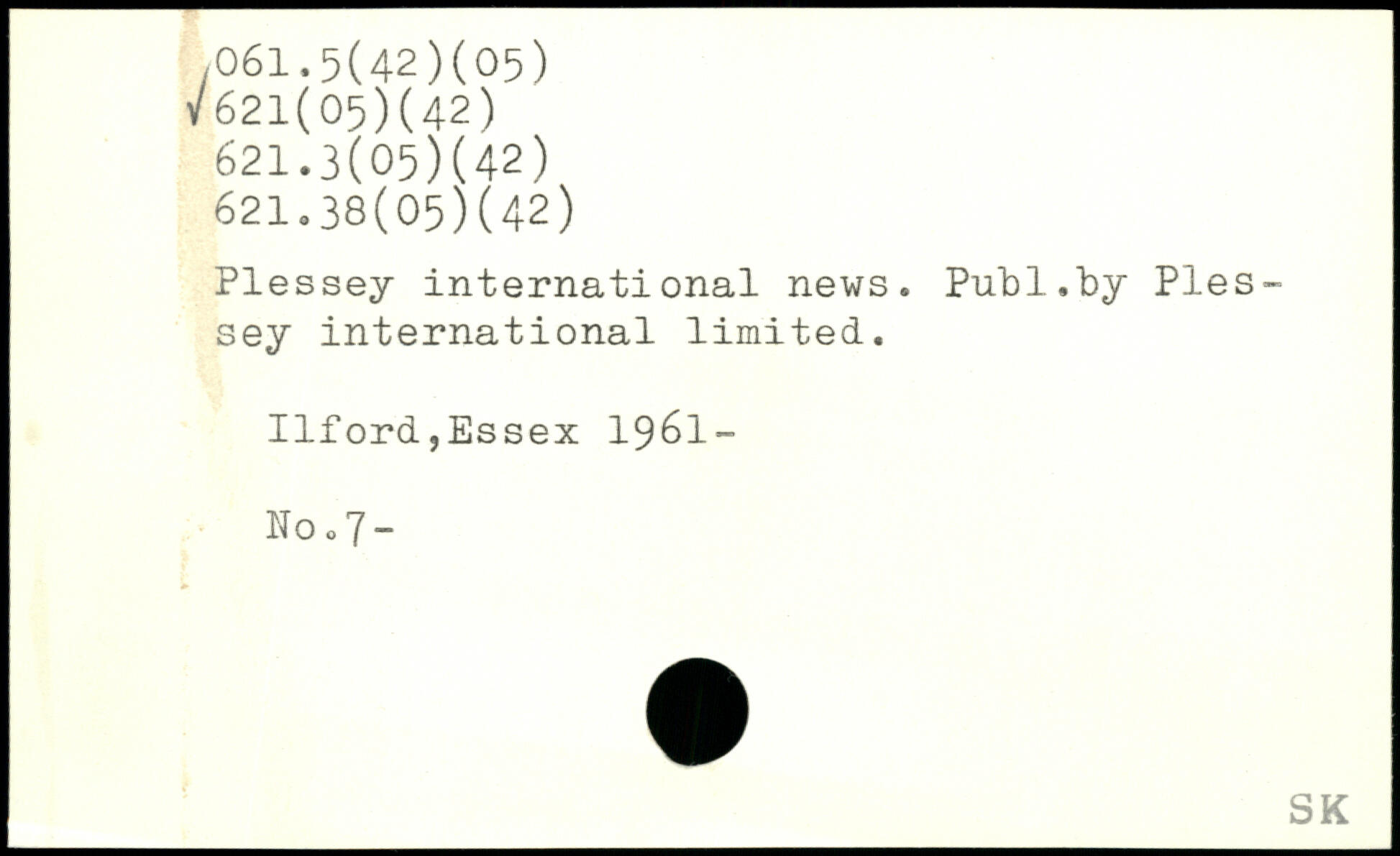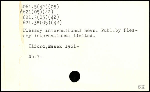 Plessey international news. Publ,by Pies-sey international limited. Ilford,Essex 1961- No <, 7-