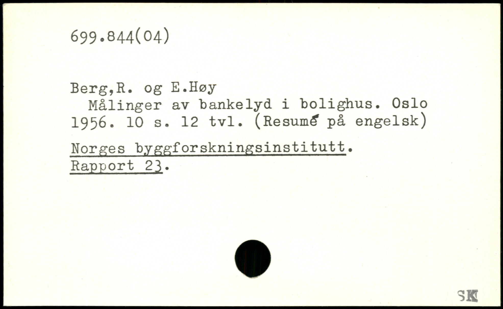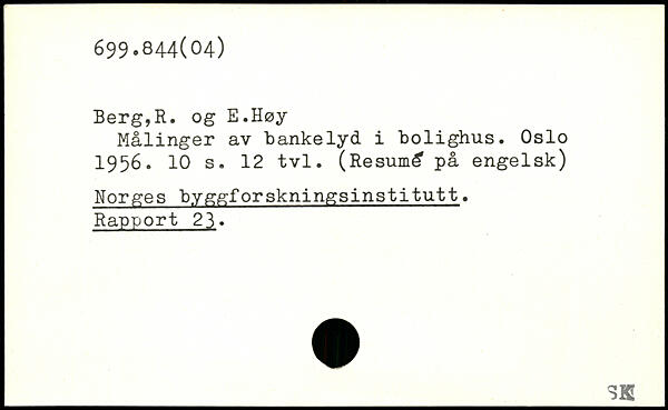 Målinger av bankelyd i bolighus. Oslo 1956.