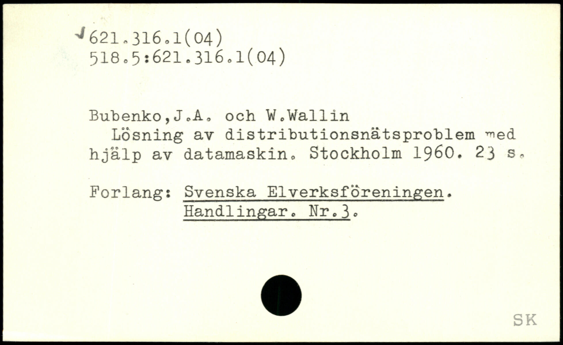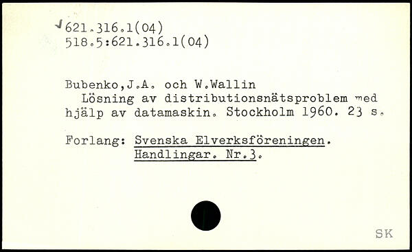 Bubenko,JoA, och W0Wallin Lösning av distributionsnätsproblem ^ed hjälp av datamaskin