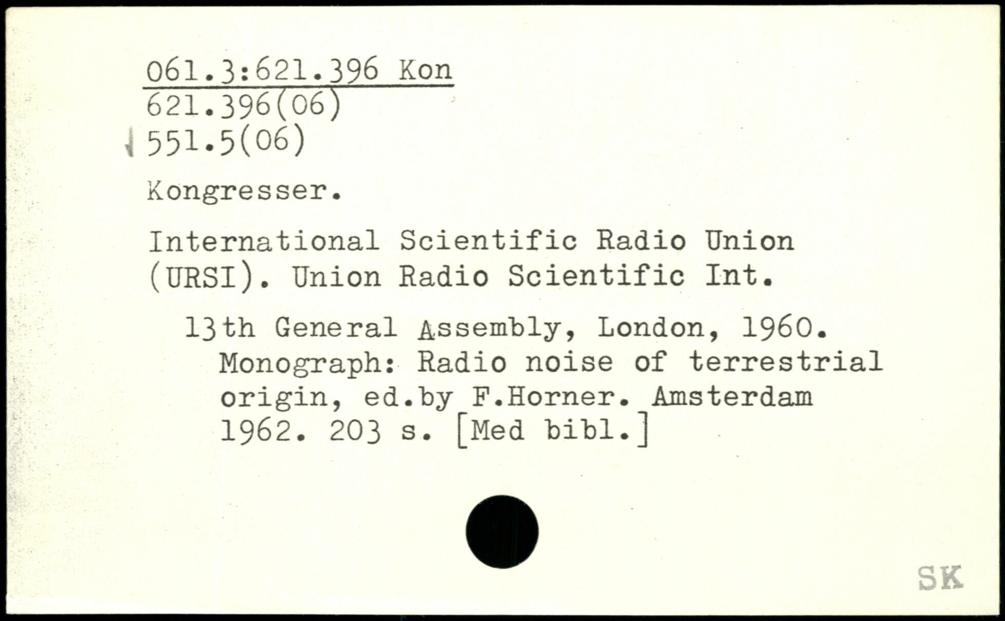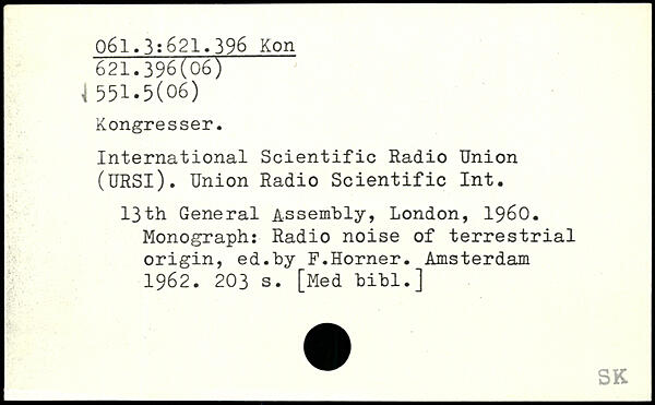 International Scientific Radio Union (URSl). Union Radio Scientific Int. 13th