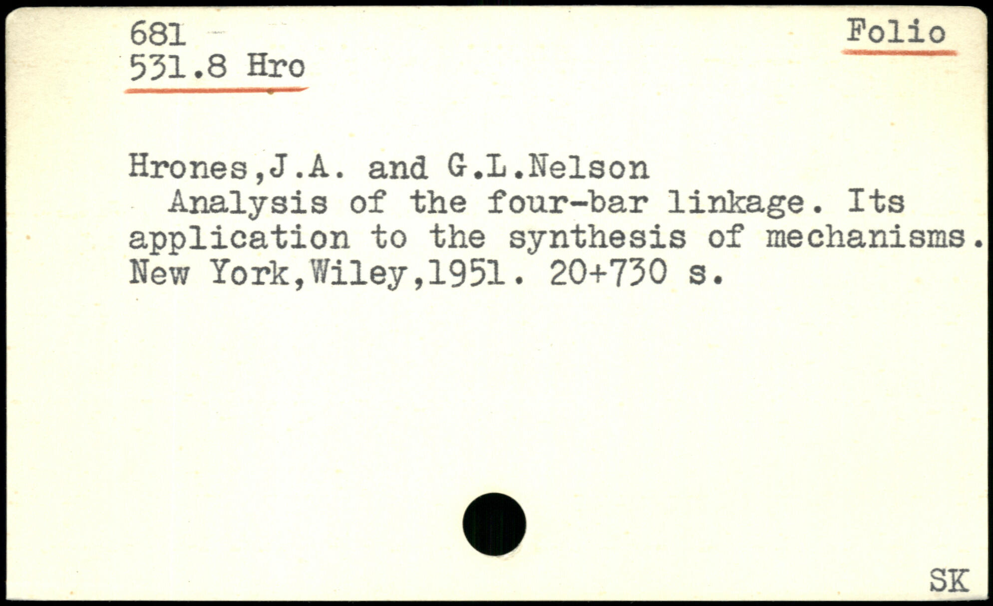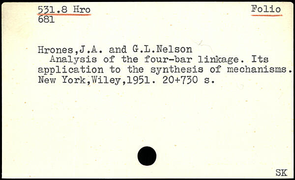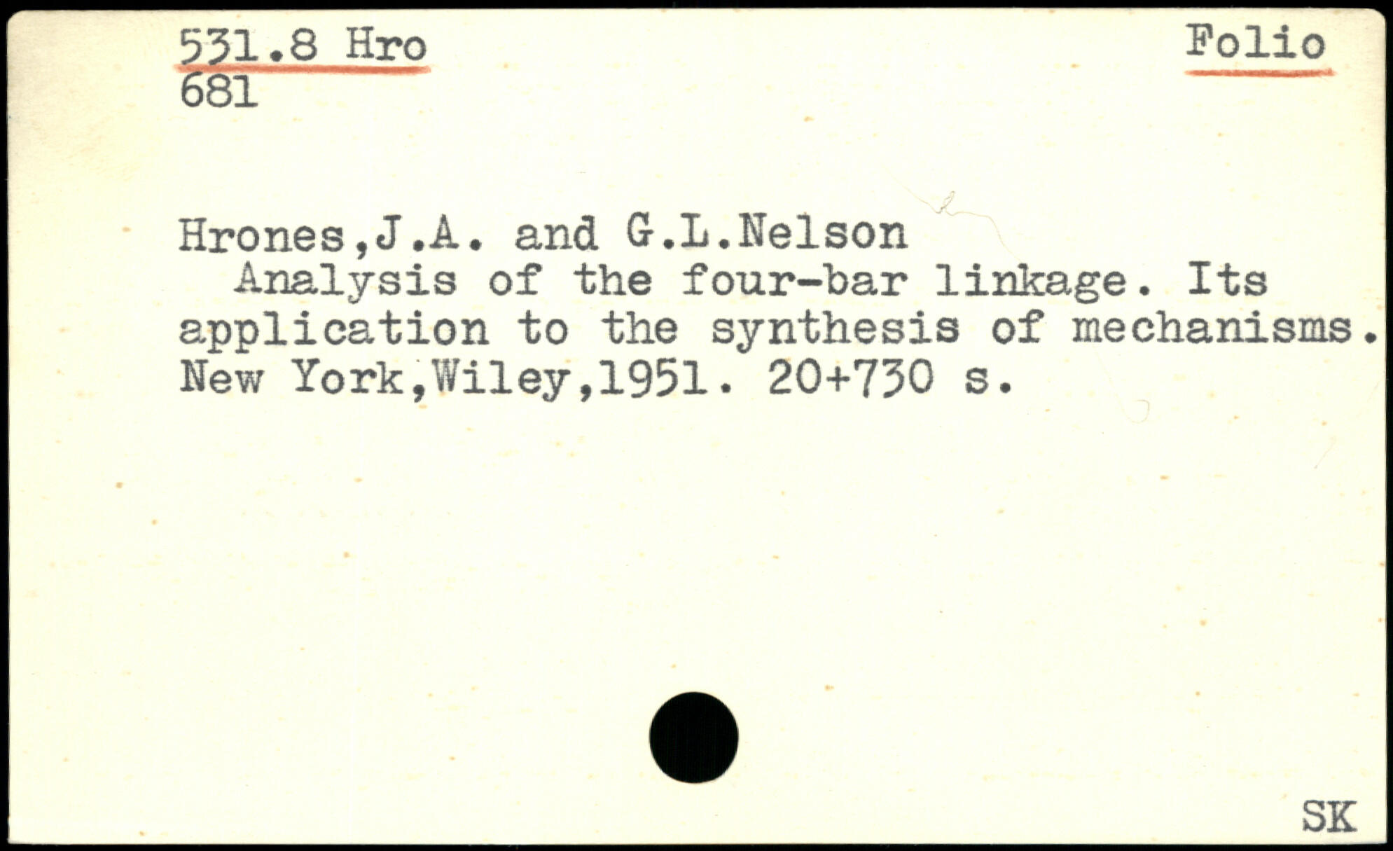 mr.— - Hrones,J.A. and G-.L.Nelson Analysis of the four-bar linkage. Its application to the synthesis of mechanisms.