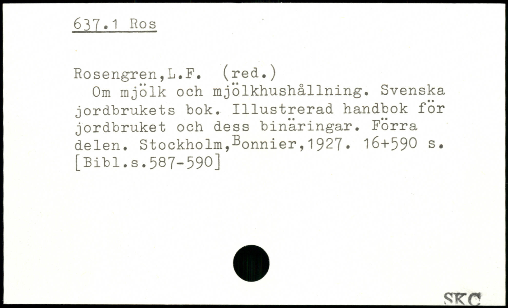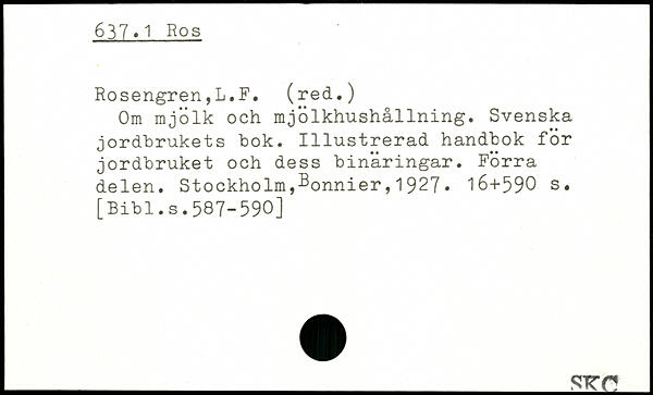 Om mjölk och mjölkhushållning. Svenska jordbrukets bok. Illustrerad handbok för jordbruket och dess binäringar. Förra delen.